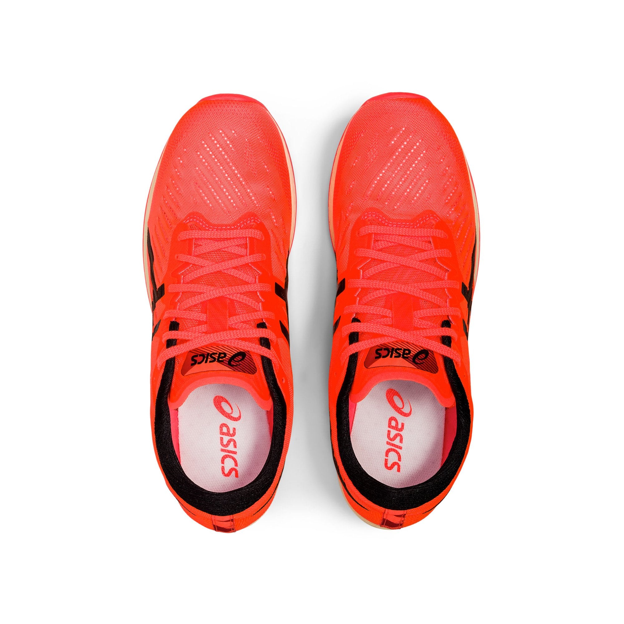 Giày chạy bộ Asics METARACER™ Tokyo được thiết kế cho những ai muốn đạt được tốc độ cao nhất trong luyện tập và thi đấu. Màu đỏ Mặt trời mọc nổi bật lấy cảm hứng từ phong cảnh mặt trời mọc ở Tokyo. Thân giày được thiết kế từ vải lưới để cho luồng không khí đi vào giày nhiều nhất có thể để cho chân luôn thoáng mát, thân giày cũng có những lỗ để nước thoát ra ngoài. Công nghệ GUIDESOLE™ kết hợp với carbon fiber tấm nằm trong đế giữa mang đến sự chắc chắn cho hình dạng đôi giày.