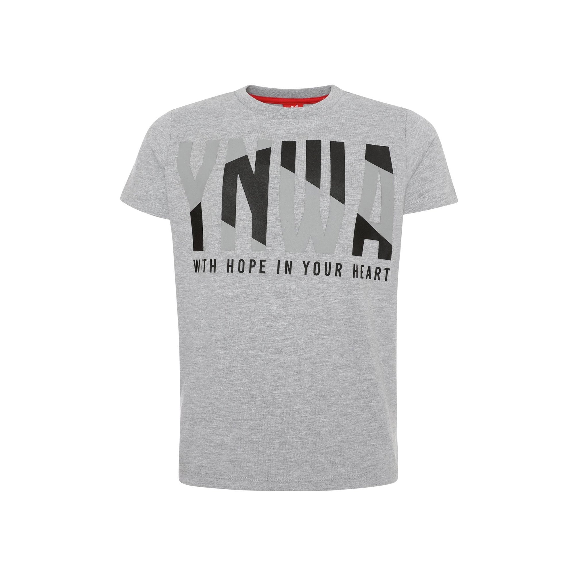 Support the Reds this season with the LFC Junior Grey Marl YNWA Tee, featuring: Basic grey marl t-shirt Short sleeves YNWA and , With hope in your heart, detail Red LFC hem tab Regular fit Materials: 60% Cotton, 40% Polyester
